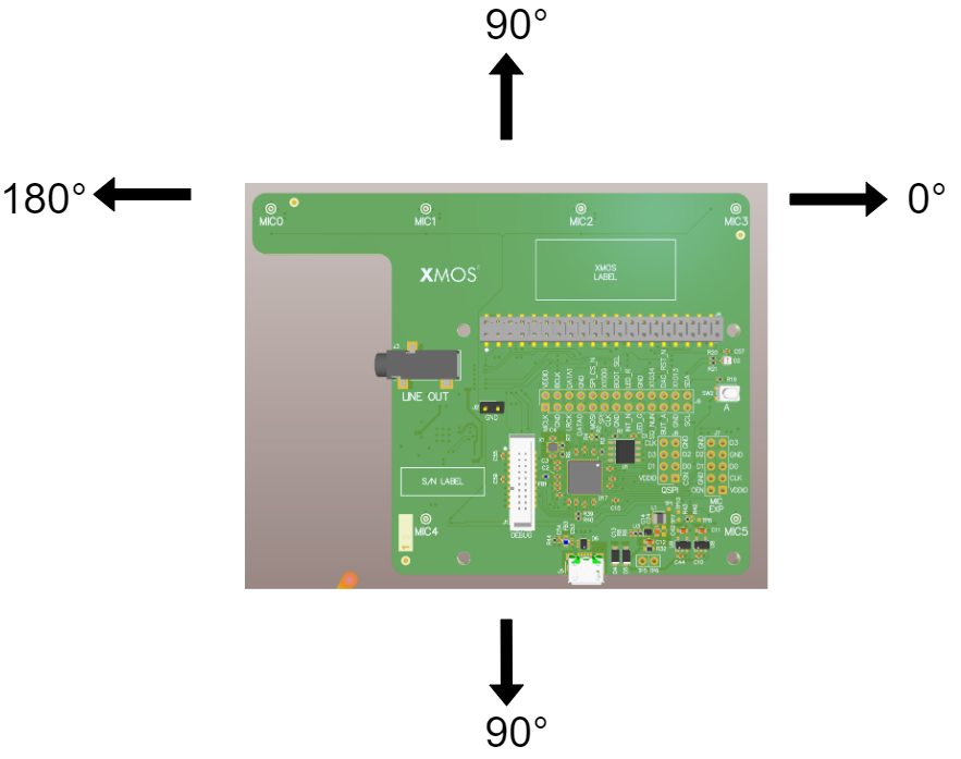 depends on the hardware configuration. The diagrams below show the azimuth angles relative to the XK-VOICE-SQ66 development kit in the two default